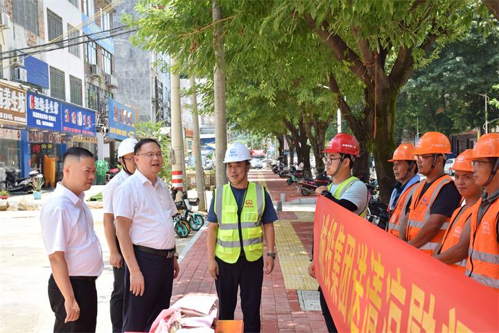 連日來(lái),賀州市頻繁發(fā)布高溫預(yù)警,熱浪襲人。7月27日,為傳達(dá)城投集團(tuán)黨委的關(guān)心關(guān)愛(ài),集團(tuán)黨委書記、董事長(zhǎng)黃俊到賀州市城市品質(zhì)提升改造項(xiàng)目(城區(qū)道路白改黑)開展送清涼慰問(wèn)活動(dòng),為高溫下堅(jiān)守一線的勞動(dòng)者送上西瓜、涼茶等防暑降溫慰問(wèn)品。