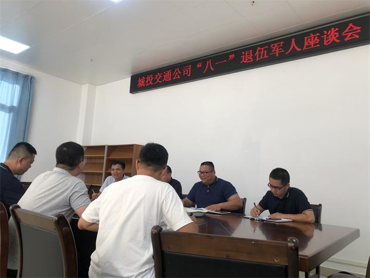 城投交通公司召開“八一”建軍節(jié)座談會2022-08-018月1日,第95個建軍節(jié)來臨之際,城投交通公司黨支部委員、副總經(jīng)理蘇略組織公司復(fù)退軍人舉行慶八一座談...
