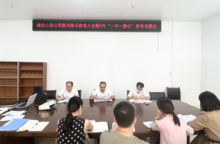 城投小貸公司召開廉潔警示教育大會暨 9月“一月一警示”教育專題會議2022-09-089月8日下午,城投小貸公司召開廉潔警示教育大會暨9月一月一警示教育專題會議。會議由公司黨支部書記、執(zhí)...