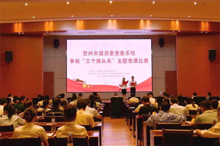 6月29日,賀州市國資委黨委舉辦國資系統(tǒng)爭做三個排頭兵主題黨課比賽。市國資委黨委班子成員出席活動。城...